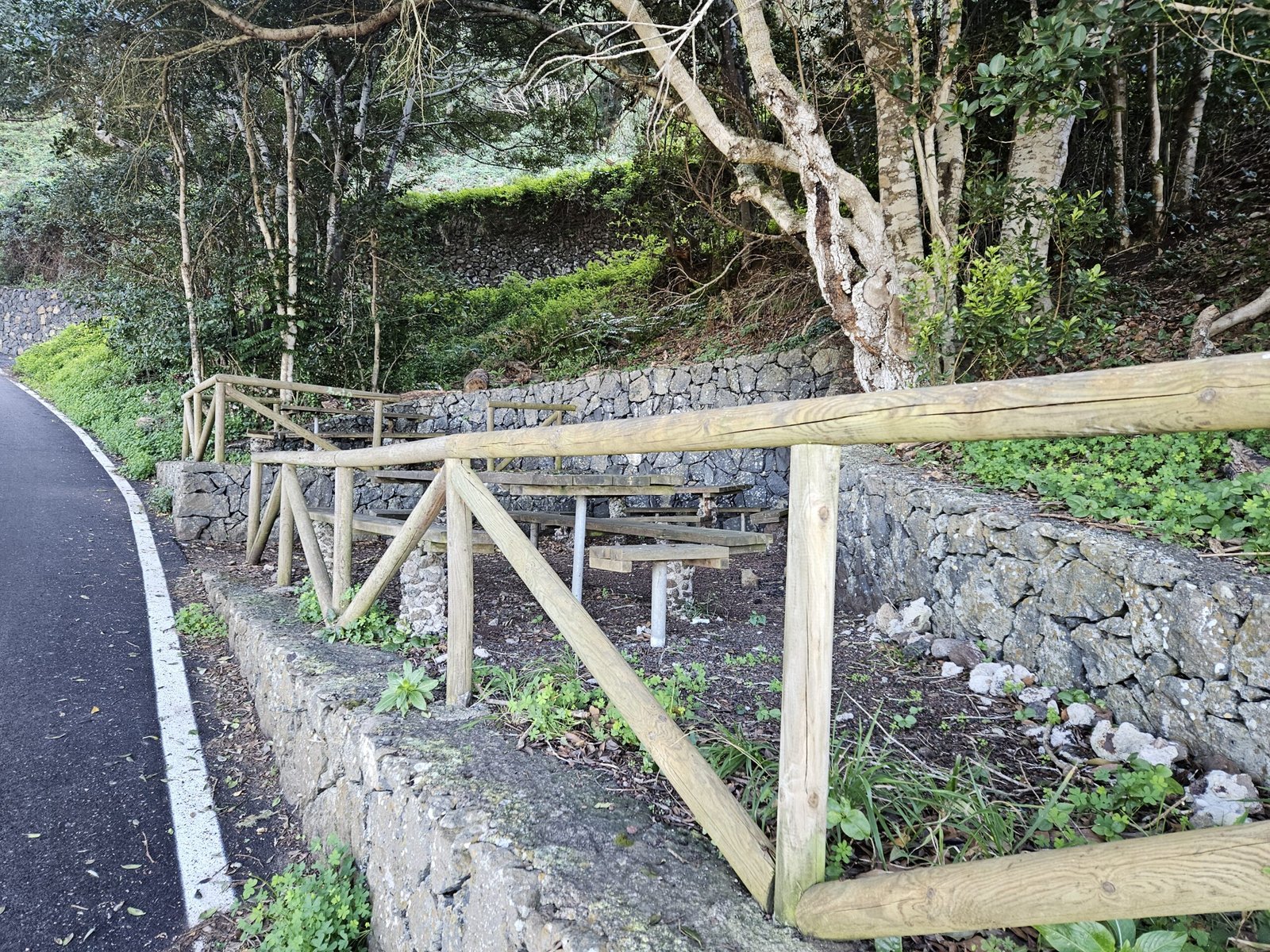 Walking down an asphalt road, we zigzagged our way to Chinamada. Luckily, the road was devoid of cars but rich in picturesque charm. Encountering only two fellow hikers, we relished the solitude in the cool, but sunny 18°C weather. We passed by a hidden lunch spot with panoramic views but decided to continue exploring the trail. After yet another turn on the road, we revealed the little village of Chinamada, its slopes resembling a lush green staircase decorated with charming houses.