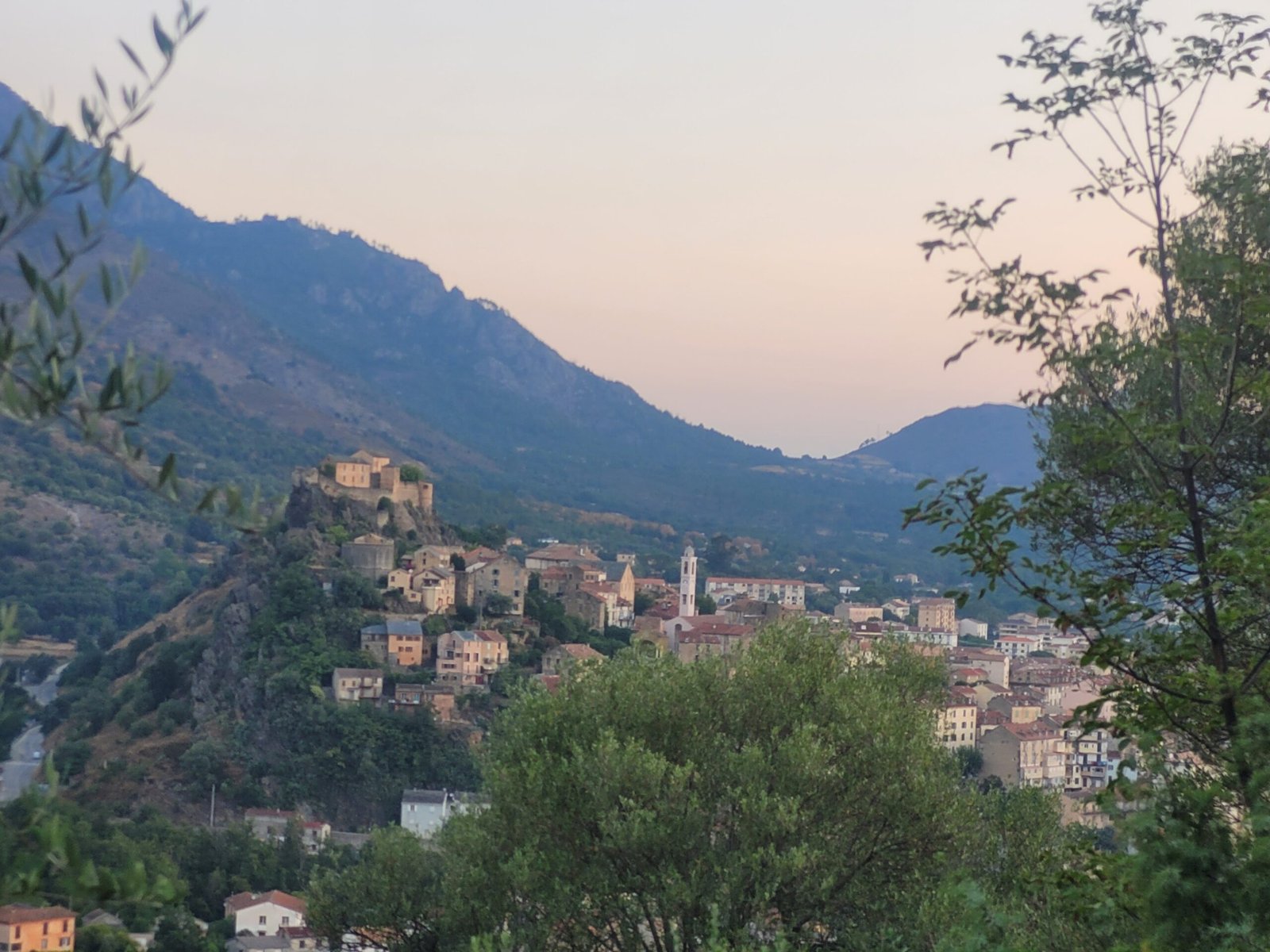 Our mission was to find the perfect spot to capture the sunrise over Corte. After some scrambling over stone fences and dodging branches, we found ourselves in a bushy nook with a clear view of the mountains and the emerging sun behind the mountain tops. The reward was a breathtaking sunrise that we captured in photos and videos, making the early start all worthwhile.