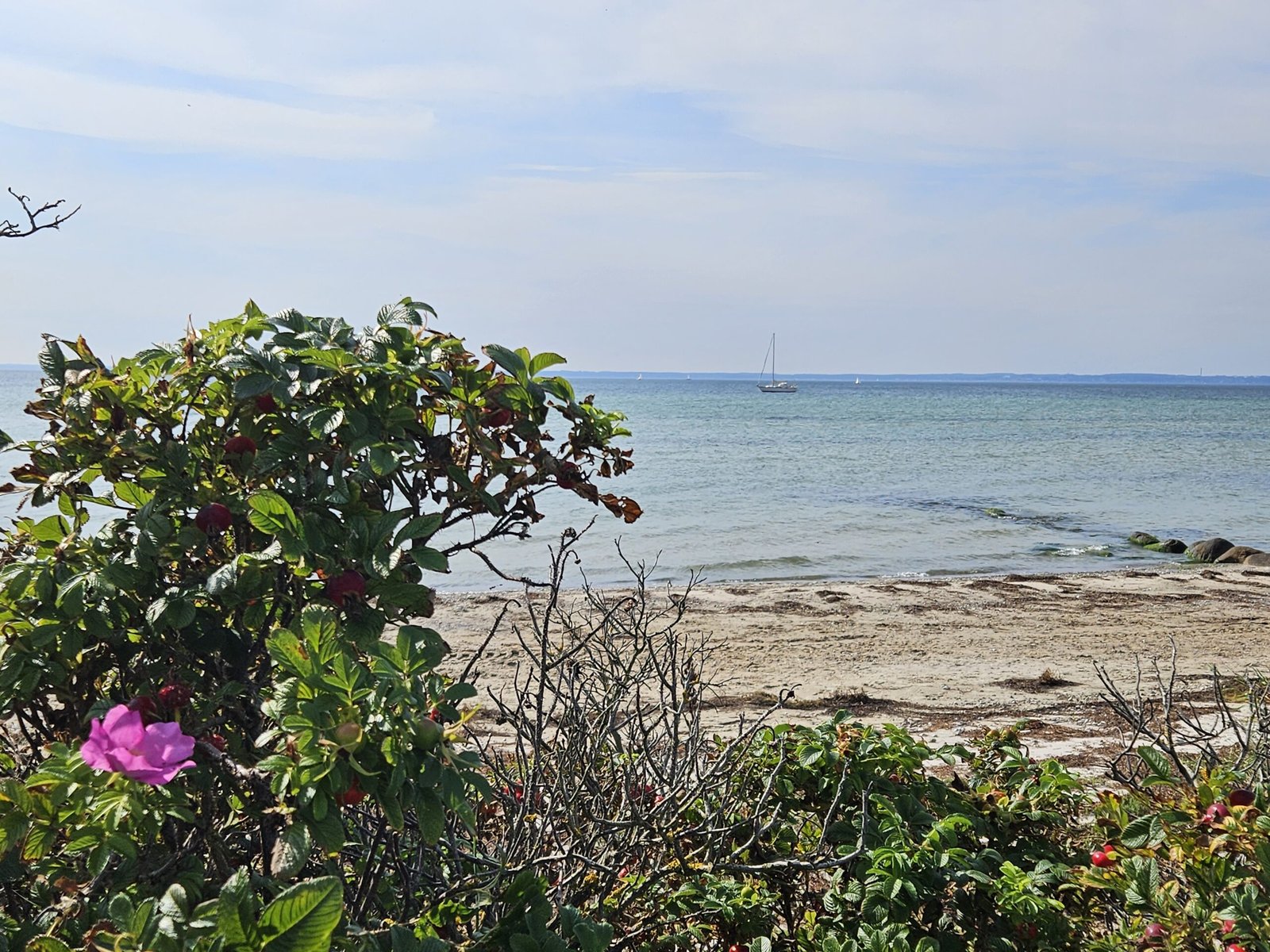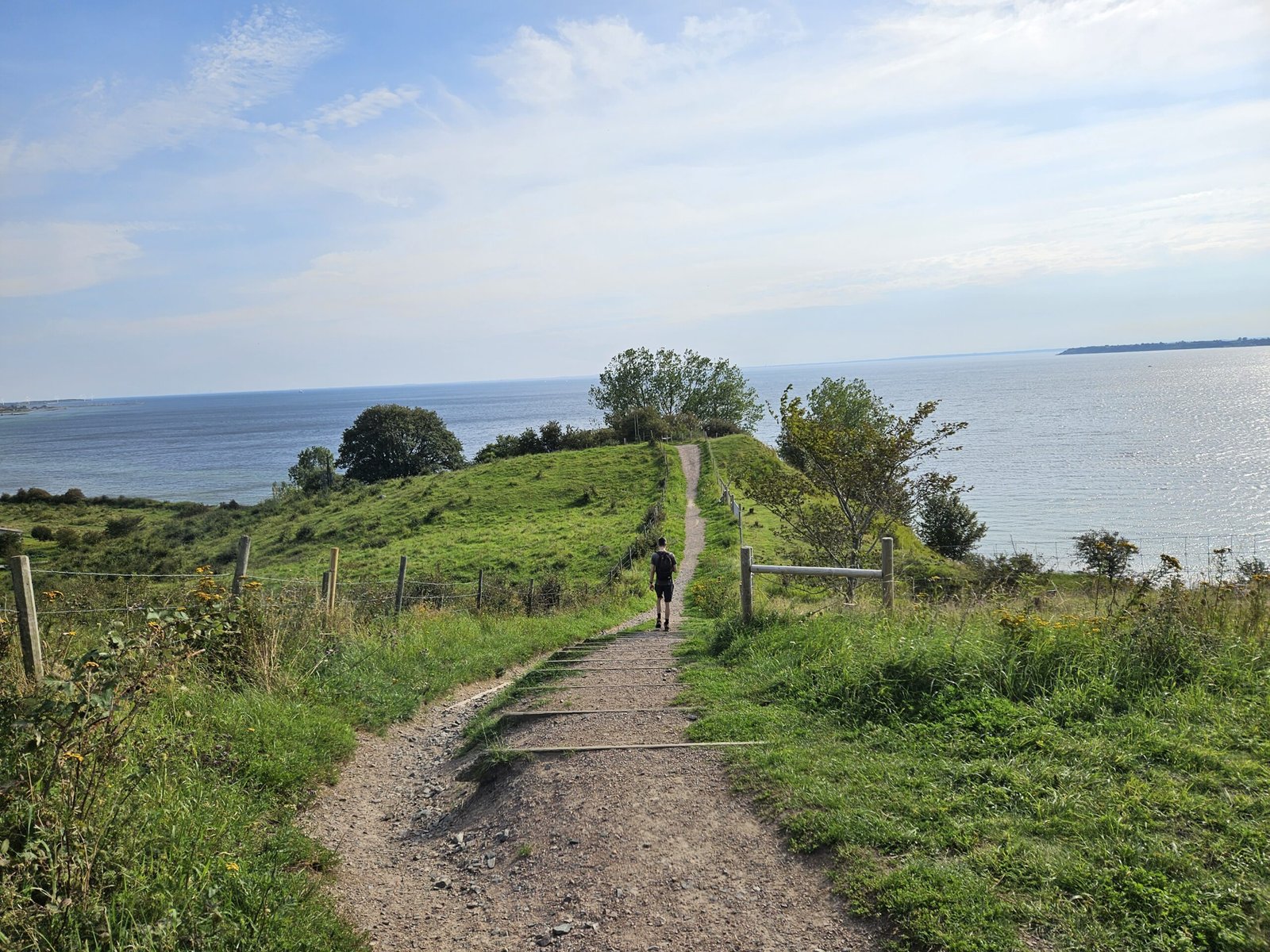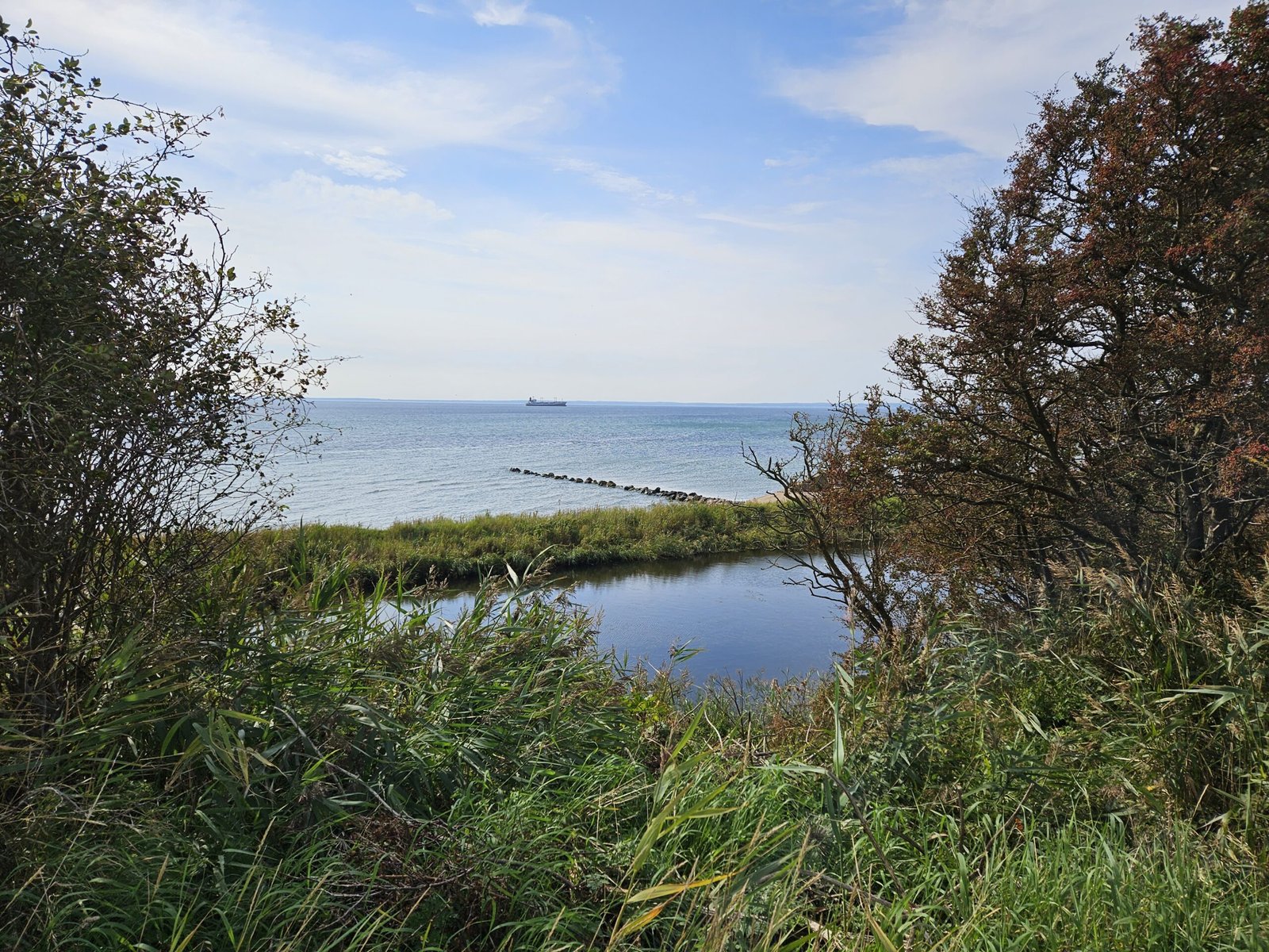 After a refreshing 30 minute break, we were ready to tackle the rest of the trail’s first leg and embark on the next exciting stage. The sun was relentless , but we were rewarded with view towards a vibrant coastline, where beachgoers, cyclists, and runners enjoyed the day too. There were serene and picturesque ports extending into the Baltic sea waters, creating a lively atmosphere. The waters were shallow and the sunrays were diffracted beautifully. We seamlessly transitioned to the second stage into the Glumslöv park, where charming houses with beautiful gardens and frontyards framed our path. The distant land in the sea, that we initially thought to be Danish, was actually the captivating island of Ven. Its presence, boosted by boats and cruise ships, were creating a beautiful coastal view not only for us but for Cormorant birds standing on the sea rocks.