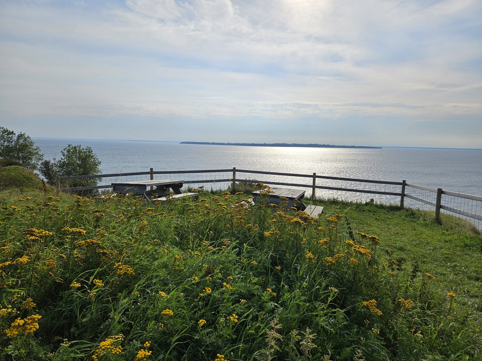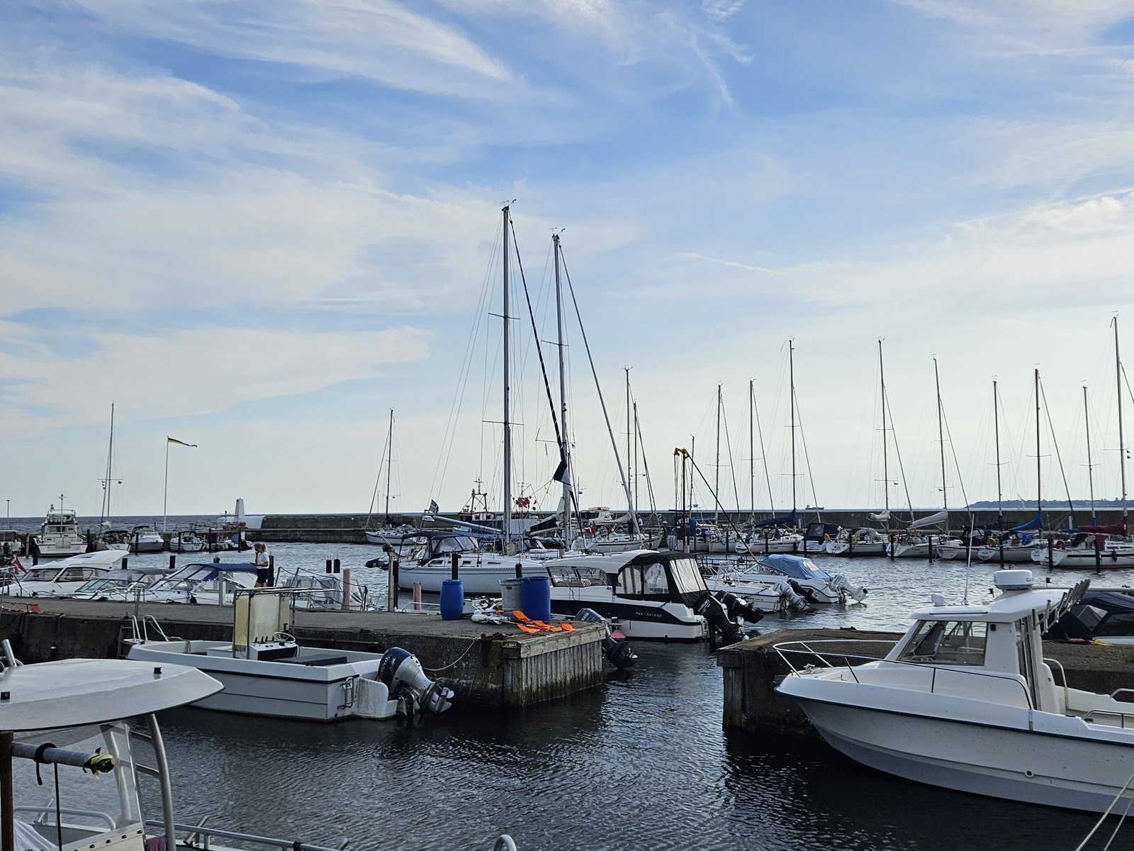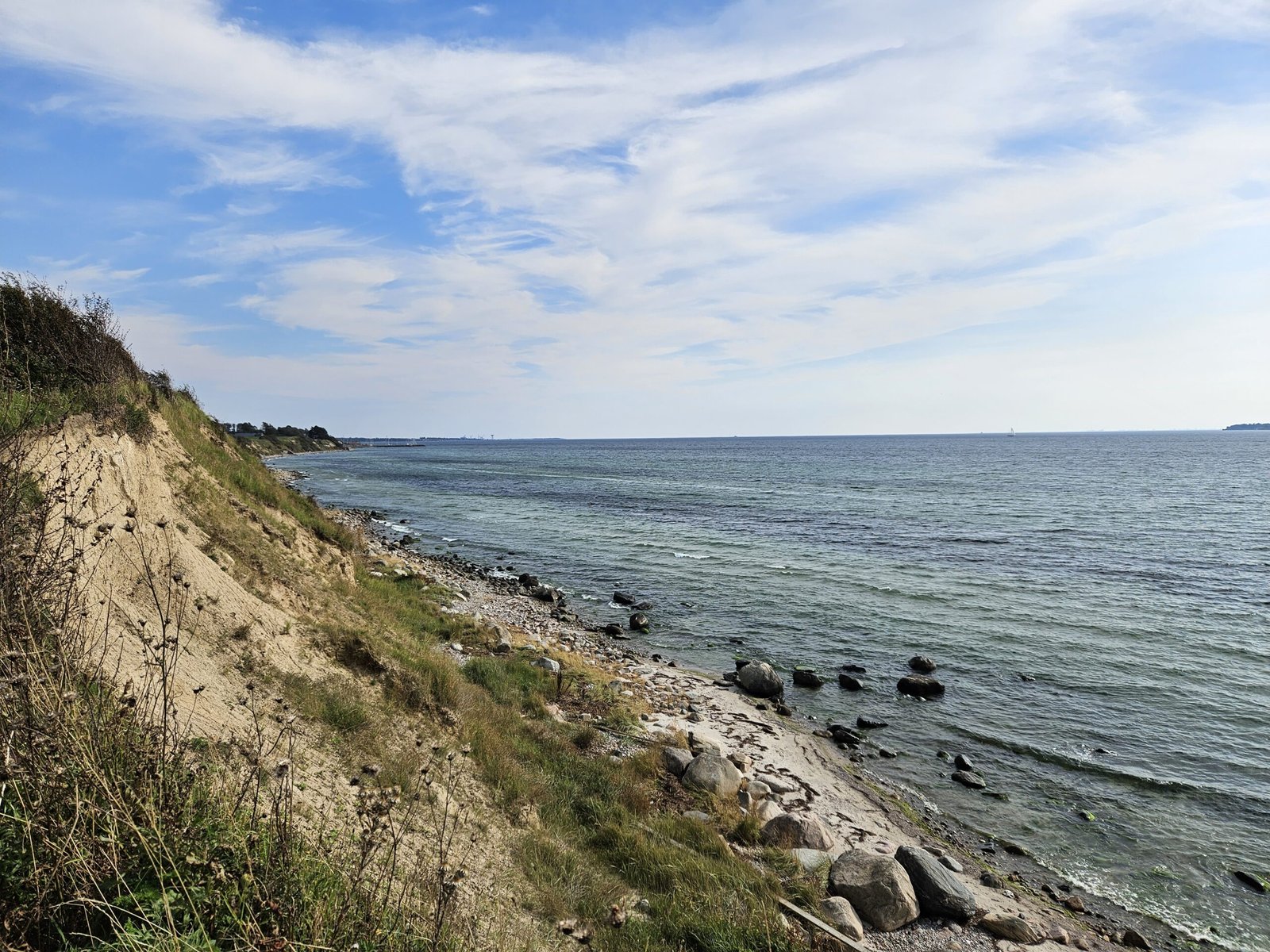 After a refreshing 30 minute break, we were ready to tackle the rest of the trail’s first leg and embark on the next exciting stage. The sun was relentless , but we were rewarded with view towards a vibrant coastline, where beachgoers, cyclists, and runners enjoyed the day too. There were serene and picturesque ports extending into the Baltic sea waters, creating a lively atmosphere. The waters were shallow and the sunrays were diffracted beautifully. We seamlessly transitioned to the second stage into the Glumslöv park, where charming houses with beautiful gardens and frontyards framed our path. The distant land in the sea, that we initially thought to be Danish, was actually the captivating island of Ven. Its presence, boosted by boats and cruise ships, were creating a beautiful coastal view not only for us but for Cormorant birds standing on the sea rocks.