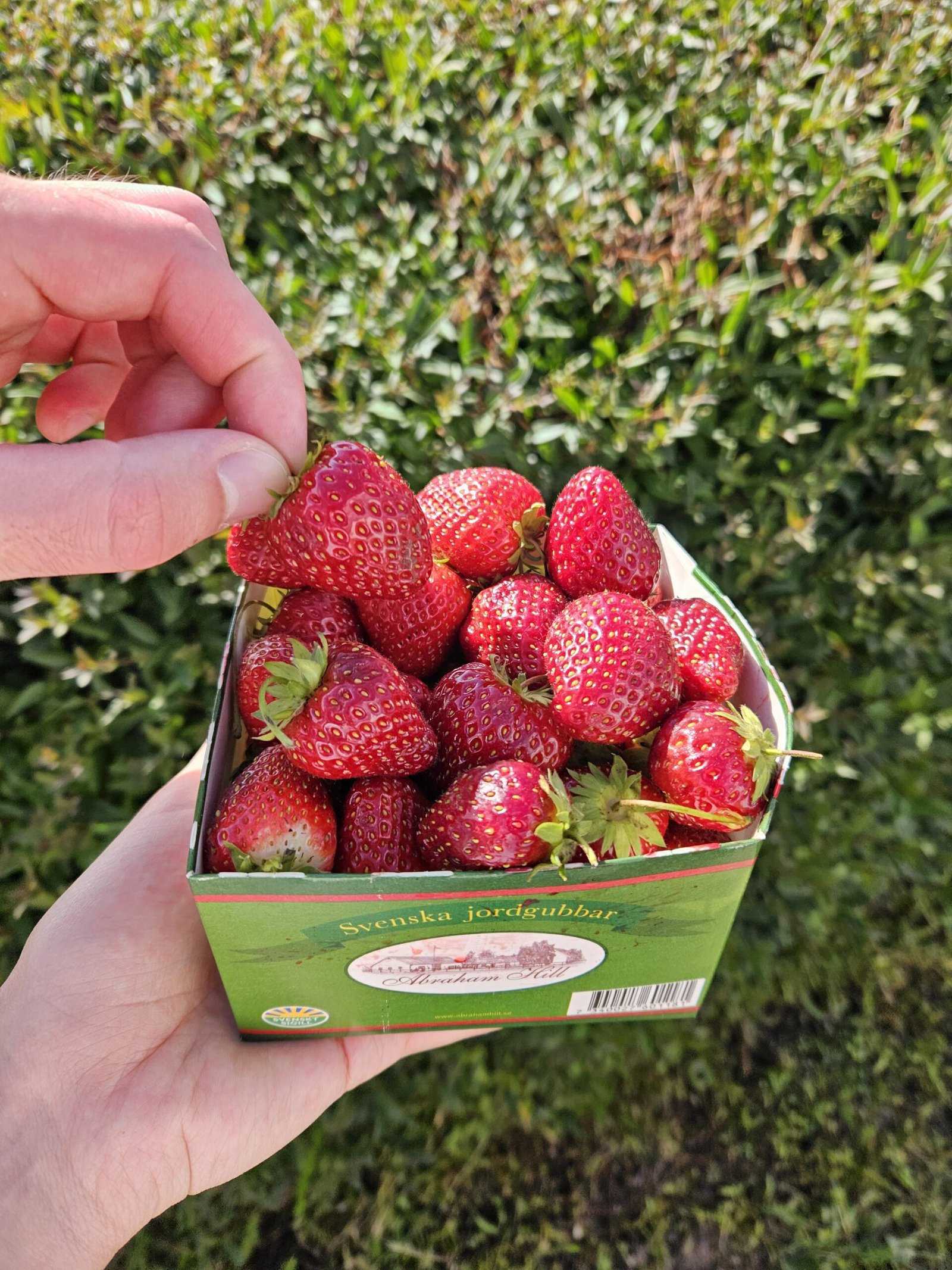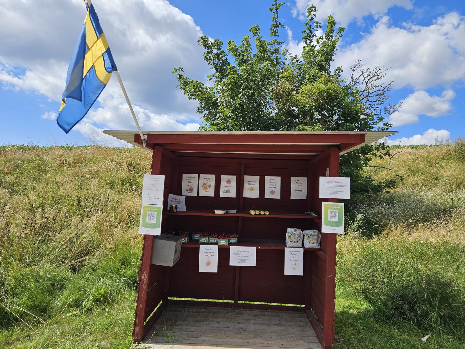 As we passed through Hammar, we encountered a delightful stand selling local strawberries, blueberries, potatoes and other sorts of veggies. Operated on an honour system, payment could be made via SWISH, a Swedish mobile payment app, or by inserting cash into a box. Though we were tempted to get some strawberries already at this time, we decided to buy some on our return.