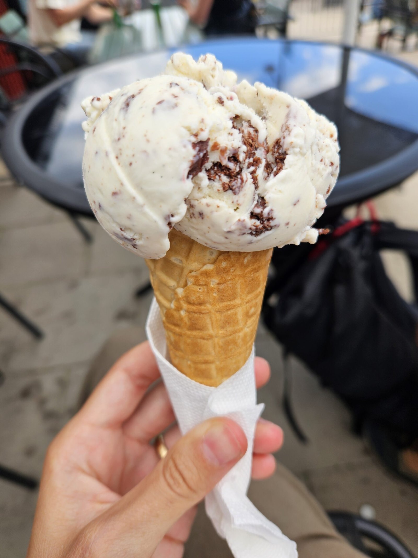 We returned then eagerly to the harbour for a well-deserved ice cream, enjoying two scoops in a waffle cone. The nearby shops offered unique ceramics, souvenirs, and clothes, probably made by the locals, and were adding to the charm of the place. The harbour was also a hub for motorcyclists, with more motor bikes than we could count.