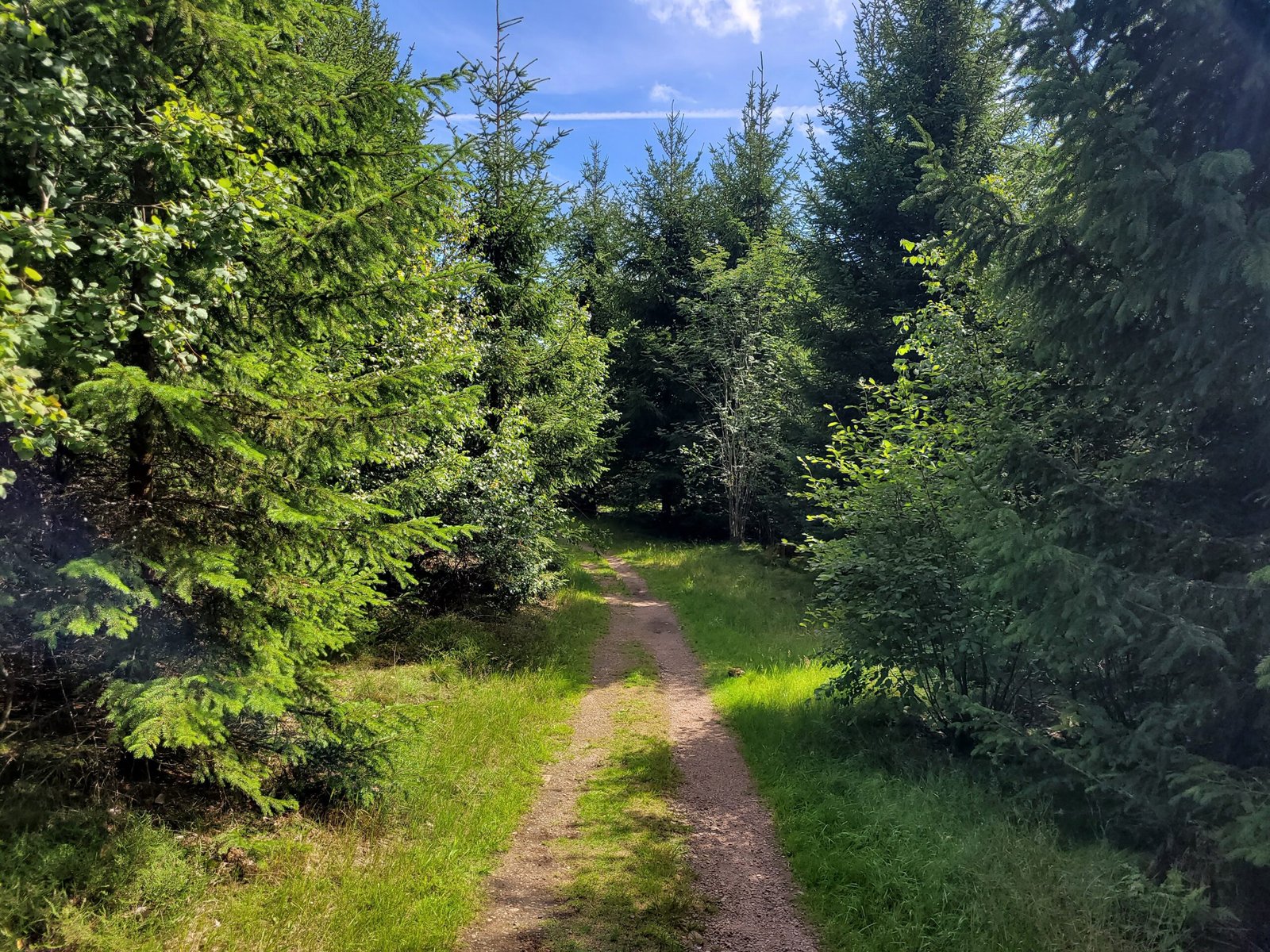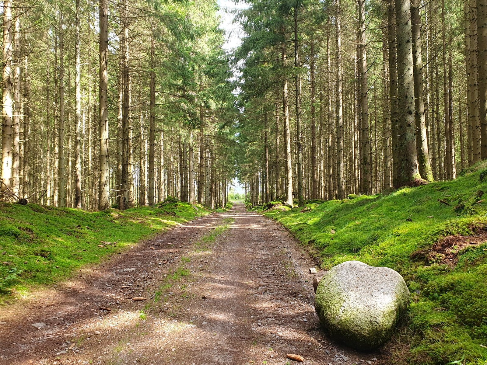 As we followed the well-marked route, it started revealing sections where timber had been collected on the sides of the road. After passing through a meadow where the air felt warmer than usual, the forest soon enveloped us once again, meandering through tall linden and birch trees. The ground beneath our feet transformed into a lush carpet of green grass and moss, reminding us of the trail’s first part. Leaving behind the forest’s embrace, we found ourselves traversing an asphalt road once again, this time beneath the soothing shadow of trees.