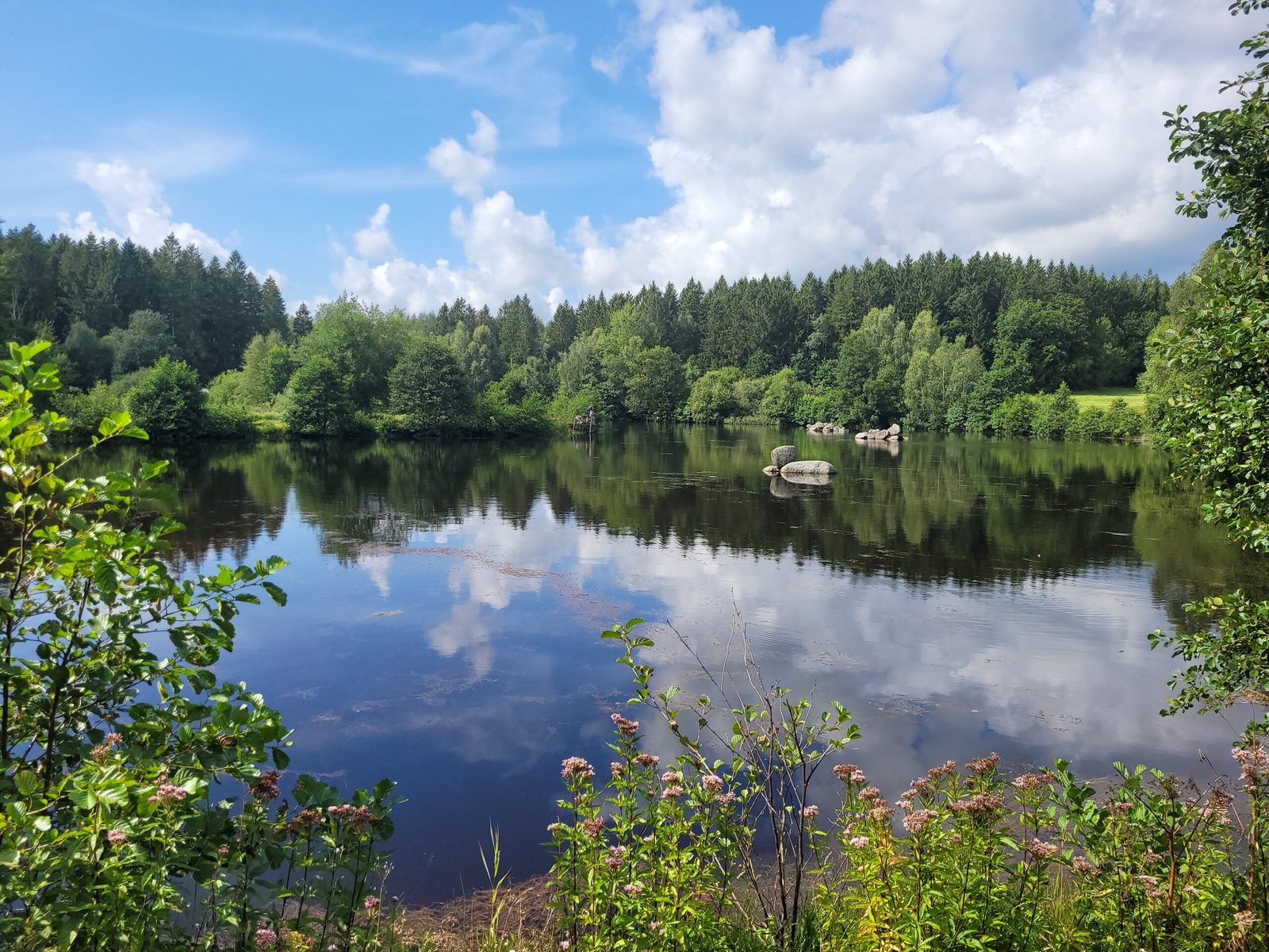 After about 10km of hiking through picturesque pathways, the path took a turn and we found ourselves on an asphalt road. But it wasn’t long before the marking of the SL3 pointed towards a meadow. We were at Bjeveröd, the first milestone of our hike. We immediatelly saw the picturesque and tranquil dam. Fishermen patiently cast their fishing rods into the waters, while we took the opportunity to indulge in a well-deserved lunch break. A table with benches, camping spots and BBQ sites, this was the perfect time for a rest. Falafel, hummus, fresh vegetables, and a fresh bread from the morning recharged our batteries as we had a beautiful view over the water and green field around us.